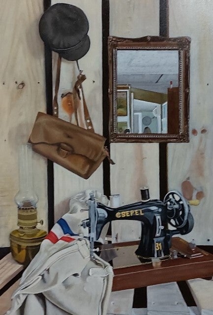 In deze sfeer maakte Gerard een zestal schilderijen van onze nostalgische nationale 'PTT postzak' met jasje en pet. Alles wat te maken heeft met structuur en texturen kun je in deze fantastisch schilderijen terugzien, het linnen van de postzak, de tas van leer en de specifieke stof van pet en jasje. Zijn eerste schilderij werd een groot succes! en zo besloot hij ook hier een zes-luik van te maken, aangevuld in de schilderijen met allerlei spullen (van de rommelmarkt of internet) die ook direct in contact stonden met onze postbezorging en toen nog het bekende brieven schrijven, ongelofelijk in al zijn details, zoals die van een oude schrijfmachine, ook deze meesterlijke 'Trompe-L'oeil's' kunnen jullie bewonderen in de fotogalerij.